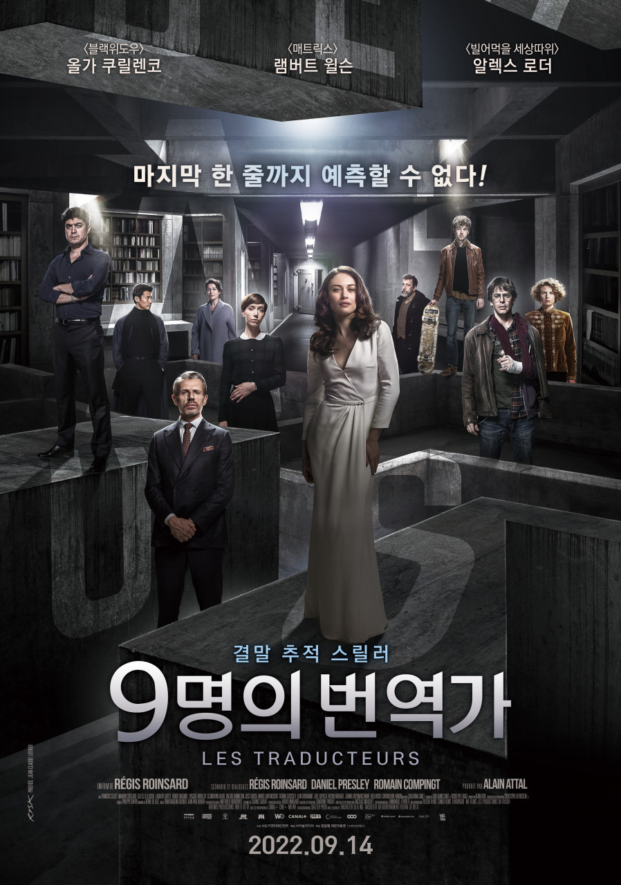 보통 미스터리 추리극처럼 누가 범인일까. 왜 이런 짓을 저질렀을까를 생각하면서 보게 되는 영화라 지루하지도 않고 너무 흥미진진하게 볼 수 있었습니다. 그리고 번역가들에 대한 이야기를 들을 수 있어서 좋았어요. 9명 번역가 각각의 사연과 작가, 출판사, 번역가의 관계에 대해서도 나옵니다. 얼마 전 한강 작가의 노벨상 수상이나 봉준호 감독 영화 <기생충>의 아카데미 상 수상 등 번역가의 역할이 정말 크다고 많이 나오는 등 번역가에 대한 관심이 꽤나 높아진 것 같아요. 작가의 작품을 전 세계 사람들에게 잘 전달해 주는 아주 중요한 역할이라고 생각합니다. 언어의 예술가라고 할 수 있을 것 같아요. 이 영화에서도 그런 이야기들이 나옵니다. 단순히 언어를 다른 언어로 바꾸는 역할이 아니라고요. 누군가는 작가가 되고 싶었지만 성공하지 못해 어쩔 수 없이 꿈을 포기하고 번역을 하는 사람들도 있고 누군가는 육아를 하면서 동시에 할 수 있는 직업이라 번역일을 하기도 합니다. 그러면서도 자부심과 사명감을 가지고 일을 하는 번역가도 있지요. 번역가라면 당연히 본인이 번역하는 작품을 쓴 작가를 만나 보고 싶을 것 같아요. 반대로 작가라면 자신의 작품을 다른 언어로 바꿔 줄 번역가들을 만나보고 싶을 것 같습니다. 이런 점들을 돈에 눈이 먼 출판사는 잘 이해하지 못하나 봅니다. 이런 작가, 번역가, 출판사들의 관계 또한 영화가 잘 보여주고 있습니다. 이 과정에서 스토리의 반전과 반전이 나오고요. 번역가라는 소재와 호화로는 배경에 몰입하여 보다가 계속되는 반전으로 기분 좋은 충격을 여러 번 받으면서 볼 수 있는 영화입니다. 주인공이 출판사 대표에게 "내 번역가들을 가둬 놓다니" 이런 느낌으로 말을 하는데 너무 공감 가고 화가 났어요. 언어도 여러 개가 나오고 그만큼 인물들도 많이 나오고 화려한 배경, 계속되는 반전에 시간 가는 줄 모르고 보는 영화입니다. 유일하게 아쉬운 점이 하나 있다면 그 9개의 언어에 한국이 빠졌다는 점... 한국어도 있었으면 진짜 한국에서도 대박 났을 영화라고 생각합니다. 저는 포스터랑 예고편만 보고도 너무 끌려서 영화관에 가서 한 번 보고 최근에 웨이브에서 한 번 더 본 영화인데 영화관 가서 볼 때 집 근처에서는 상영을 안 해서 멀리 용산 아이파크몰 CGV까지 가서 봐야 했어요. 큰 영화관에서 보니까 좋긴 했지만 많이 알려지지 않은 것 같아서 아쉬웠습니다. 집에서 OTT로 영화 뭐 보지 할 때 이거 보시면 같이 본 분들한테도 욕 안 먹을 그런 영화로 추천합니다!!